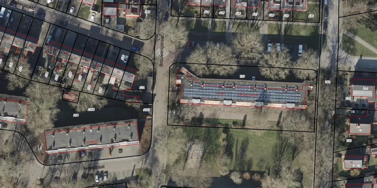 Het perceel waarop Ankerstraat 60 staat heeft een oppervlakte van 2592 m². Dit is een zeer groot perceel. De perceeloppervlakte wordt geregistreerd door het Kadaster. Gedetailleerde informatie over de maten van dit perceel kunt u vinden in het rapport Kadastrale kaart met maatvoering van Ankerstraat 60.