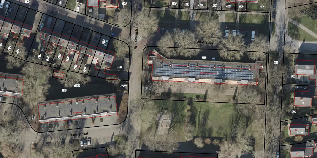 Het perceel waarop Ankerstraat 92 staat heeft een oppervlakte van 2592 m². Dit is een zeer groot perceel. De perceeloppervlakte wordt geregistreerd door het Kadaster. Gedetailleerde informatie over de maten van dit perceel kunt u vinden in het rapport Kadastrale kaart met maatvoering van Ankerstraat 92.