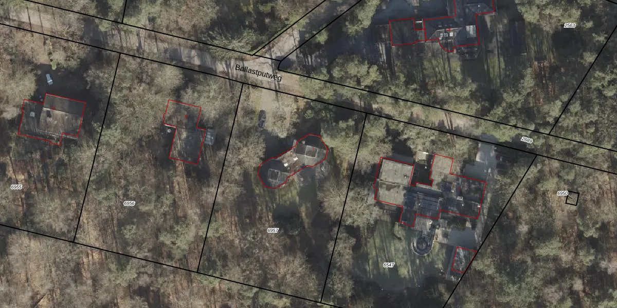 Het perceel waarop Ballastputweg 7 staat heeft een oppervlakte van 2613 m². Dit is een zeer groot perceel. De perceeloppervlakte wordt geregistreerd door het Kadaster. Gedetailleerde informatie over de maten van dit perceel kunt u vinden in het rapport Kadastrale kaart met maatvoering van Ballastputweg 7.