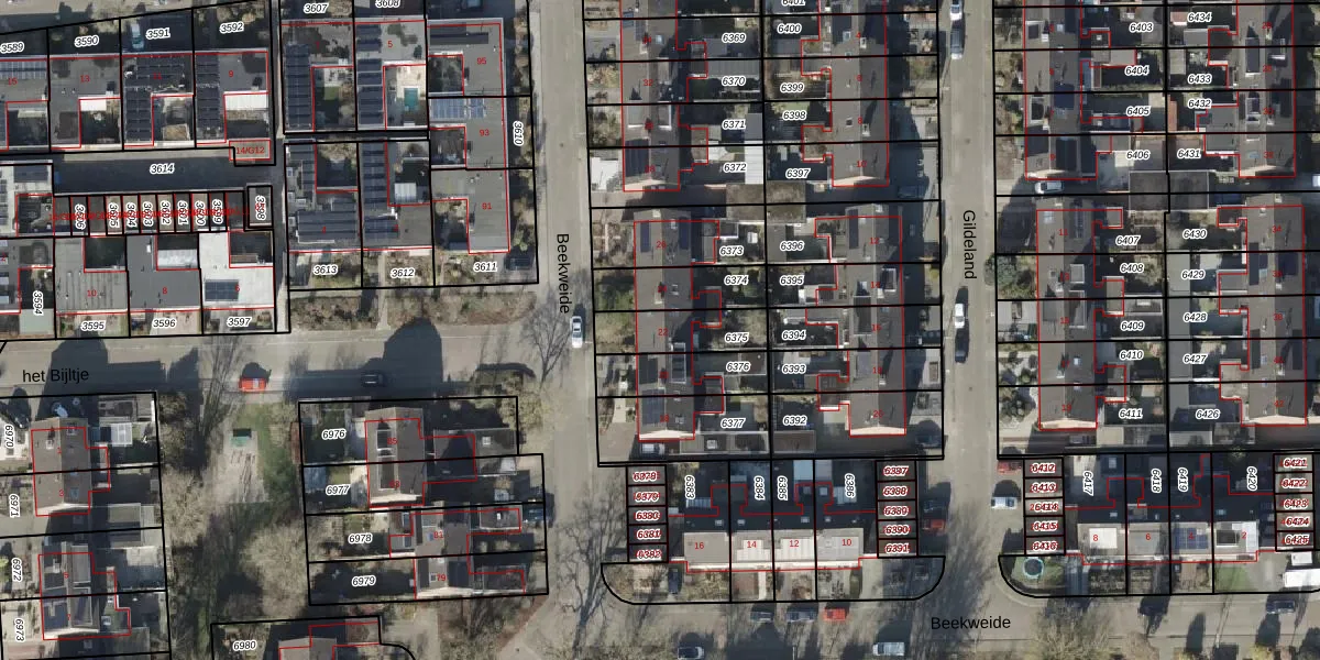 Gebruik de zoekbalk of klik op een perceel voor informatie over de adressen binnen dit perceel.