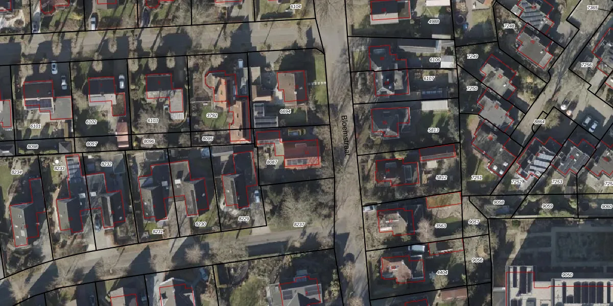 Gebruik de zoekbalk of klik op een perceel voor informatie over de adressen binnen dit perceel.
