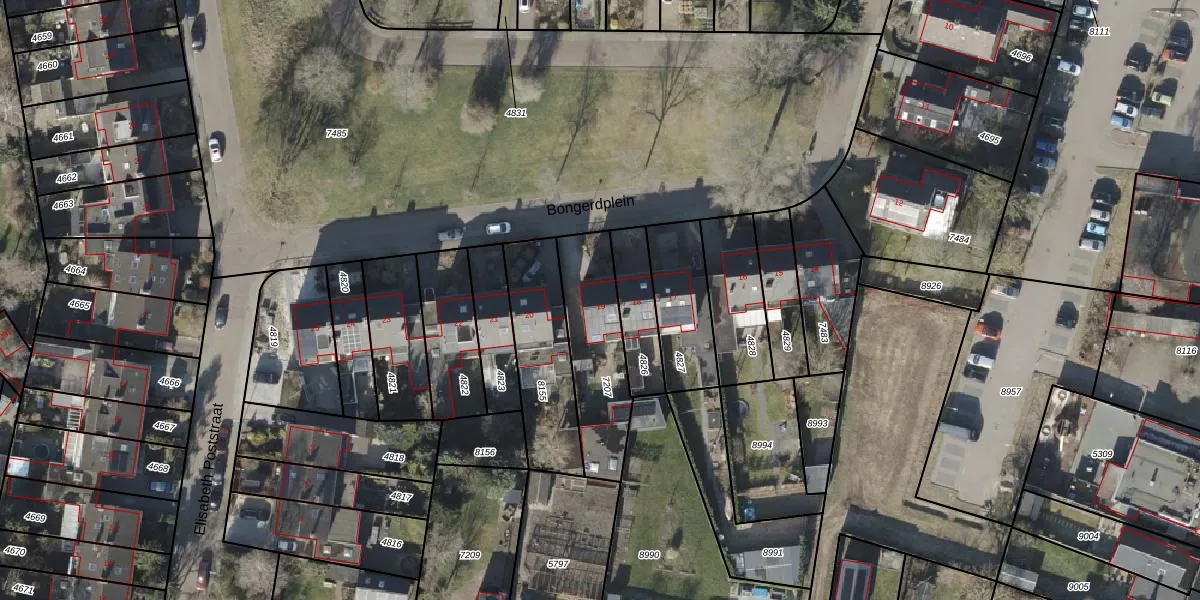 Het perceel waarop Bongerdplein 19 staat heeft een oppervlakte van 350 m². Dit is een groot perceel. De perceeloppervlakte wordt geregistreerd door het Kadaster. Gedetailleerde informatie over de maten van dit perceel kunt u vinden in het rapport Kadastrale kaart met maatvoering van Bongerdplein 19.