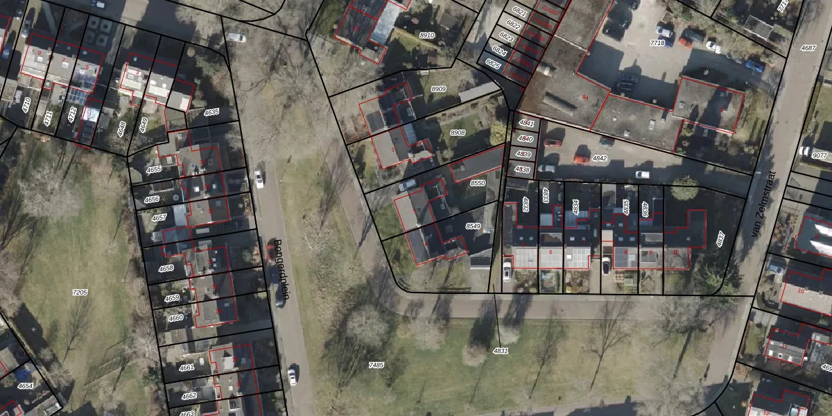 Gebruik de zoekbalk of klik op een perceel voor informatie over de adressen binnen dit perceel.
