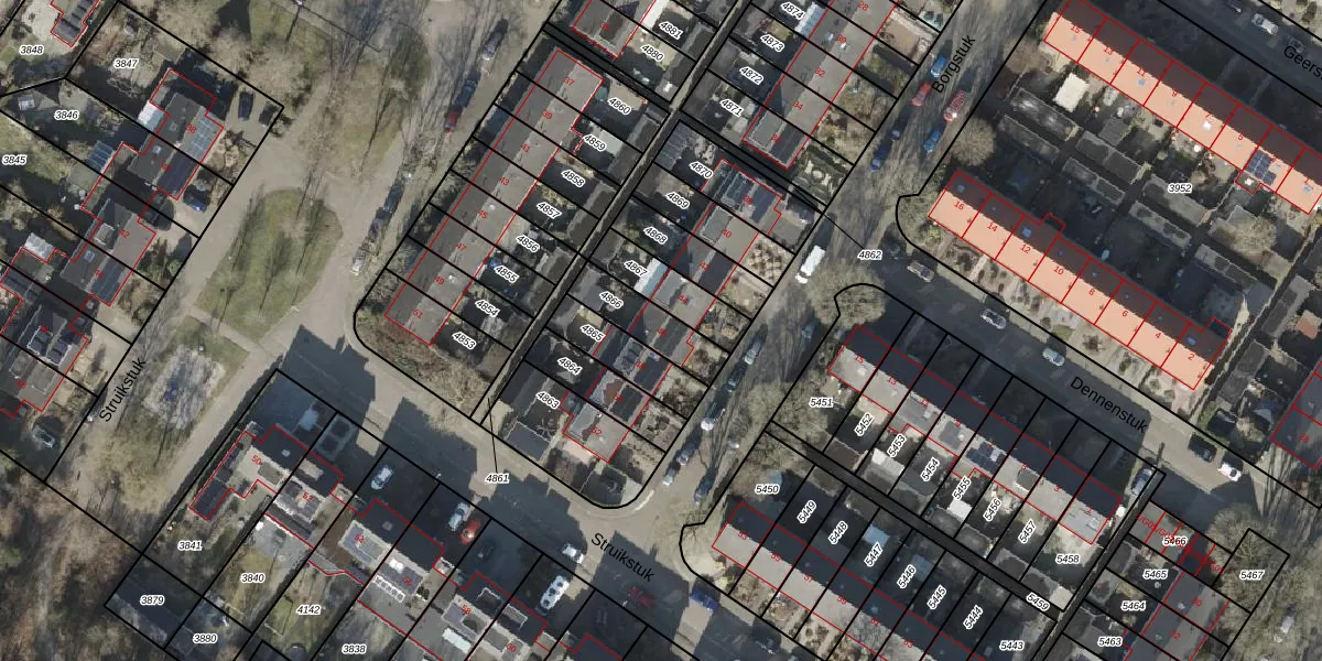 Het perceel waarop Borgstuk 46 staat heeft een oppervlakte van 154 m². Dit is een middelgroot perceel. De perceeloppervlakte wordt geregistreerd door het Kadaster. Gedetailleerde informatie over de maten van dit perceel kunt u vinden in het rapport Kadastrale kaart met maatvoering van Borgstuk 46.