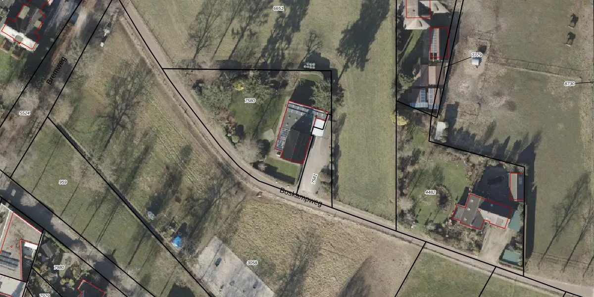 Het perceel waarop Boskampweg 4 staat heeft een oppervlakte van 1445 m². Dit is een zeer groot perceel. De perceeloppervlakte wordt geregistreerd door het Kadaster. Gedetailleerde informatie over de maten van dit perceel kunt u vinden in het rapport Kadastrale kaart met maatvoering van Boskampweg 4.