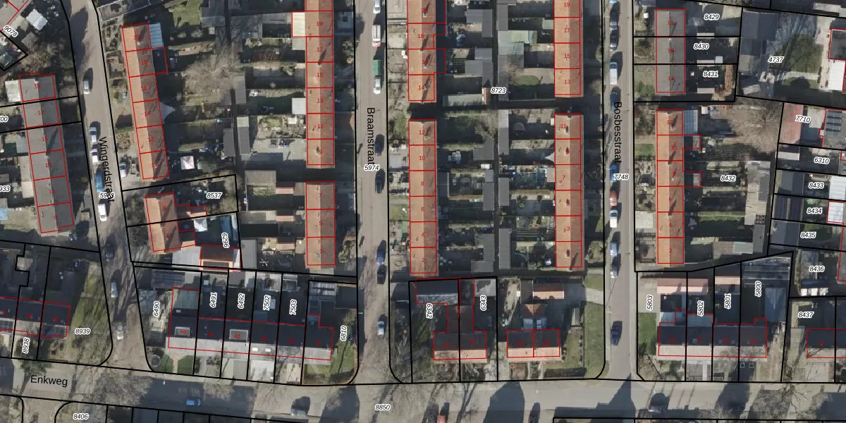 Het perceel waarop Braamstraat 6 staat heeft een oppervlakte van 6045 m². Dit is een zeer groot perceel. De perceeloppervlakte wordt geregistreerd door het Kadaster. Gedetailleerde informatie over de maten van dit perceel kunt u vinden in het rapport Kadastrale kaart met maatvoering van Braamstraat 6.