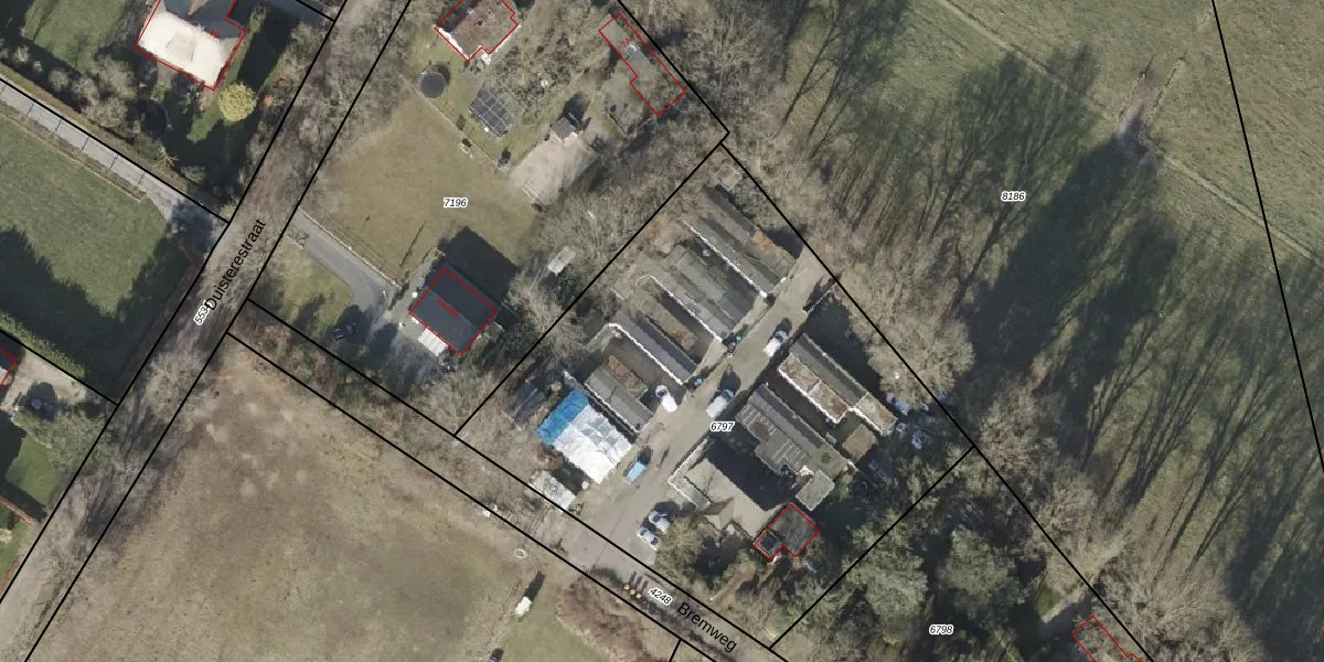 Het perceel waarop Bremweg 22 staat heeft een oppervlakte van 3045 m². Dit is een zeer groot perceel. De perceeloppervlakte wordt geregistreerd door het Kadaster. Gedetailleerde informatie over de maten van dit perceel kunt u vinden in het rapport Kadastrale kaart met maatvoering van Bremweg 22.