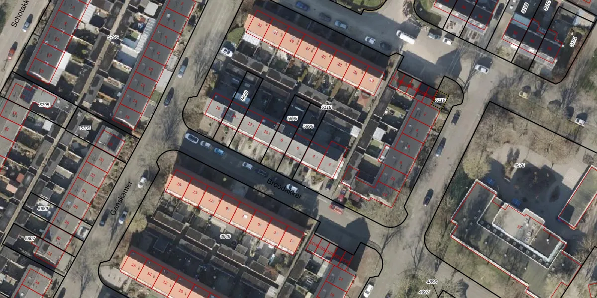 Het perceel waarop Broodakker 6 staat heeft een oppervlakte van 155 m². Dit is een middelgroot perceel. De perceeloppervlakte wordt geregistreerd door het Kadaster. Gedetailleerde informatie over de maten van dit perceel kunt u vinden in het rapport Kadastrale kaart met maatvoering van Broodakker 6.