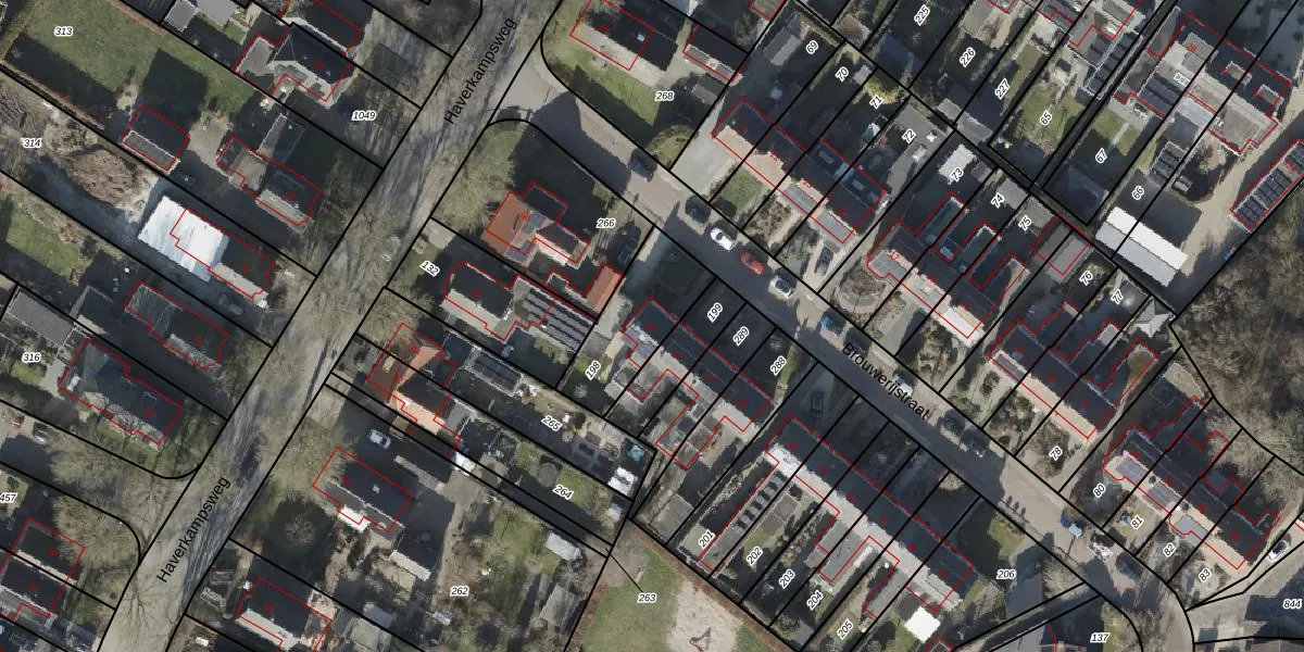 Gebruik de zoekbalk of klik op een perceel voor informatie over de adressen binnen dit perceel.