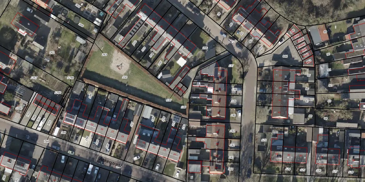 Gebruik de zoekbalk of klik op een perceel voor informatie over de adressen binnen dit perceel.