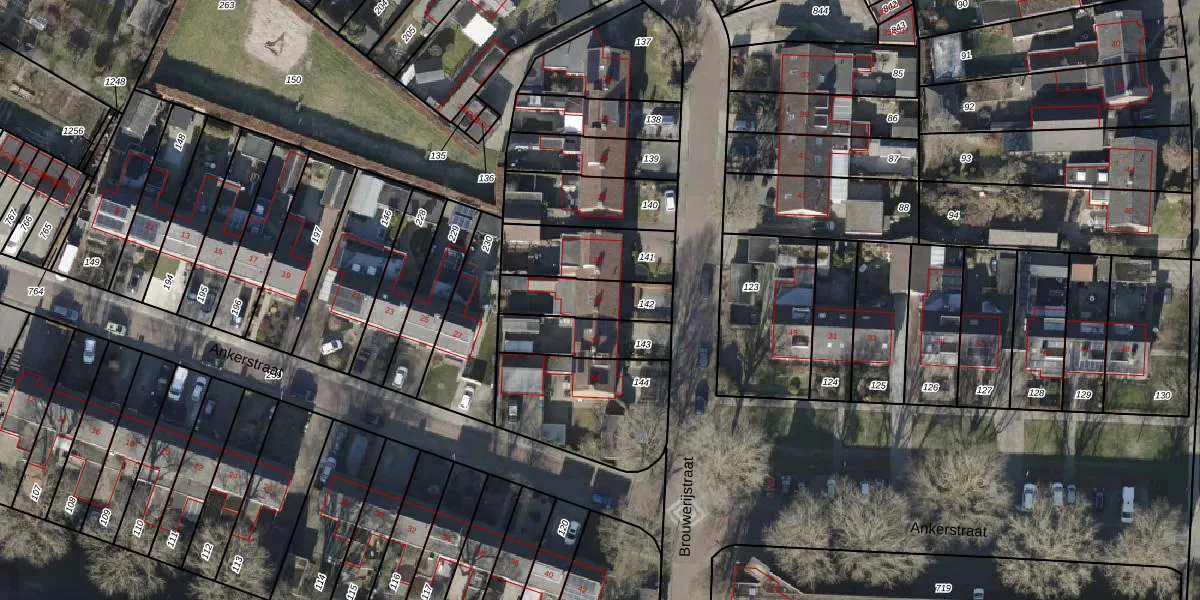 Het perceel waarop Brouwerijstraat 40 staat heeft een oppervlakte van 188 m². Dit is een middelgroot perceel. De perceeloppervlakte wordt geregistreerd door het Kadaster. Gedetailleerde informatie over de maten van dit perceel kunt u vinden in het rapport Kadastrale kaart met maatvoering van Brouwerijstraat 40.