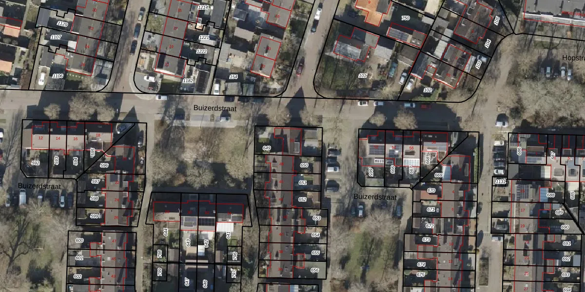 Het perceel waarop Buizerdstraat 50 staat heeft een oppervlakte van 226 m². Dit is een middelgroot perceel. De perceeloppervlakte wordt geregistreerd door het Kadaster. Gedetailleerde informatie over de maten van dit perceel kunt u vinden in het rapport Kadastrale kaart met maatvoering van Buizerdstraat 50.