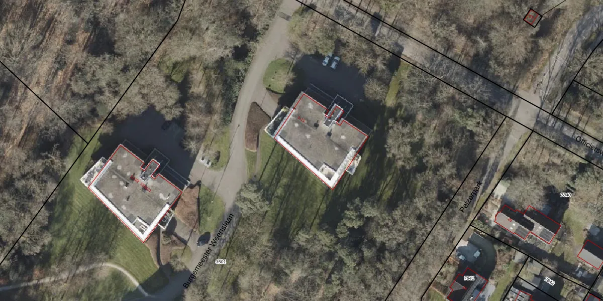 Het perceel waarop Burgemeester Weertslaan 11 staat heeft een oppervlakte van 2,0 ha. Dit is een zeer groot perceel. De perceeloppervlakte wordt geregistreerd door het Kadaster. Gedetailleerde informatie over de maten van dit perceel kunt u vinden in het rapport Kadastrale kaart met maatvoering van Burgemeester Weertslaan 11.