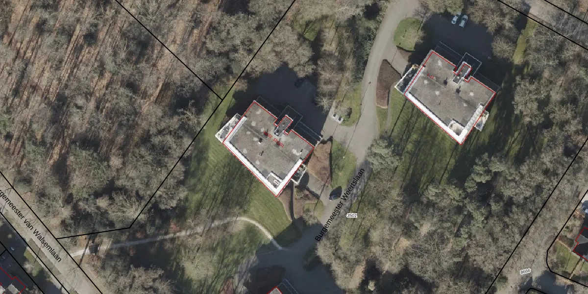 Het perceel waarop Burgemeester Weertslaan 12 staat heeft een oppervlakte van 2,0 ha. Dit is een zeer groot perceel. De perceeloppervlakte wordt geregistreerd door het Kadaster. Gedetailleerde informatie over de maten van dit perceel kunt u vinden in het rapport Kadastrale kaart met maatvoering van Burgemeester Weertslaan 12.