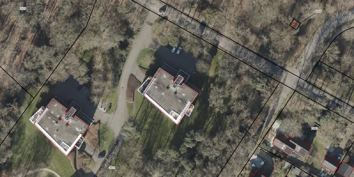 Het perceel waarop Burgemeester Weertslaan 2 staat heeft een oppervlakte van 2,0 ha. Dit is een zeer groot perceel. De perceeloppervlakte wordt geregistreerd door het Kadaster. Gedetailleerde informatie over de maten van dit perceel kunt u vinden in het rapport Kadastrale kaart met maatvoering van Burgemeester Weertslaan 2.