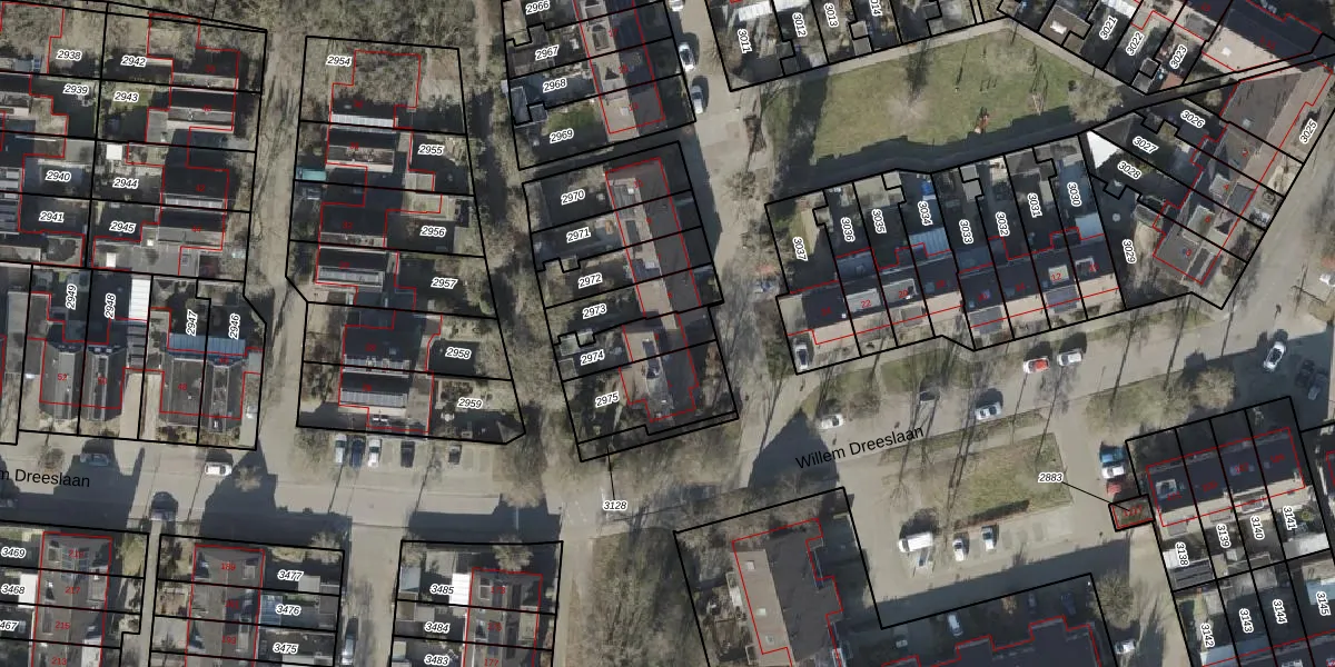 Gebruik de zoekbalk of klik op een perceel voor informatie over de adressen binnen dit perceel.