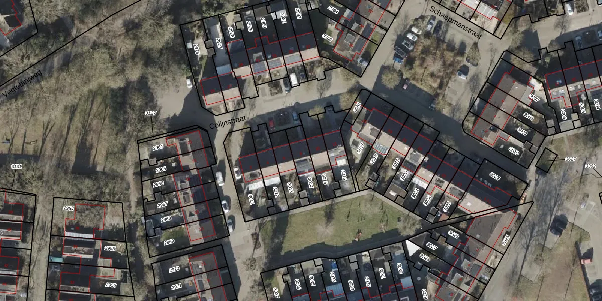 Gebruik de zoekbalk of klik op een perceel voor informatie over de adressen binnen dit perceel.