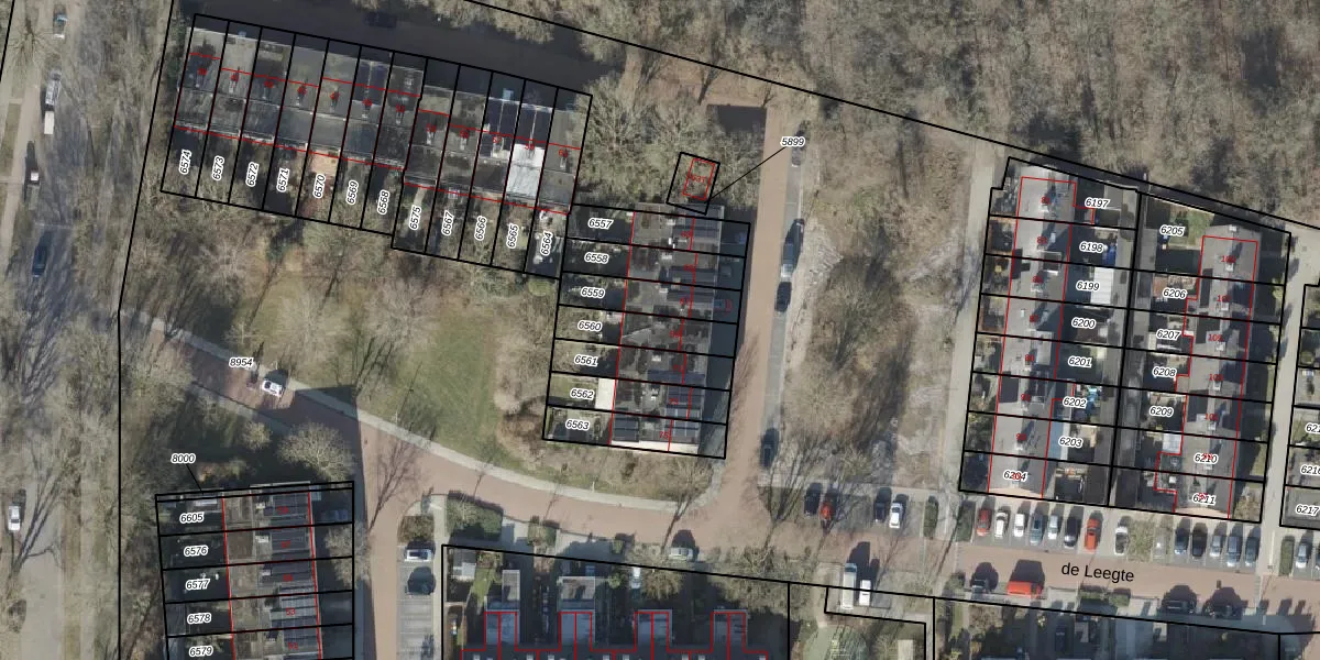 Gebruik de zoekbalk of klik op een perceel voor informatie over de adressen binnen dit perceel.