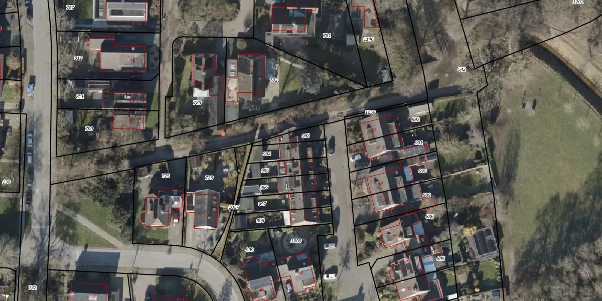 Gebruik de zoekbalk of klik op een perceel voor informatie over de adressen binnen dit perceel.
