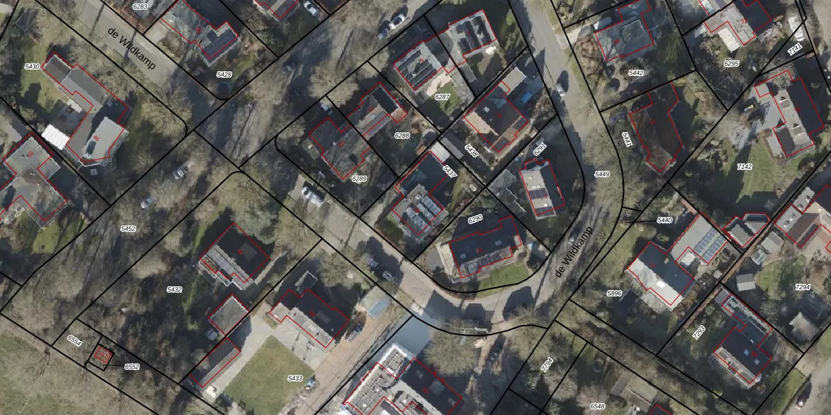 Het perceel waarop de Wildkamp 29 staat heeft een oppervlakte van 427 m². Dit is een groot perceel. De perceeloppervlakte wordt geregistreerd door het Kadaster. Gedetailleerde informatie over de maten van dit perceel kunt u vinden in het rapport Kadastrale kaart met maatvoering van de Wildkamp 29.