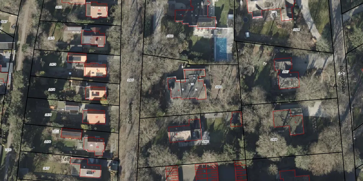 Gebruik de zoekbalk of klik op een perceel voor informatie over de adressen binnen dit perceel.