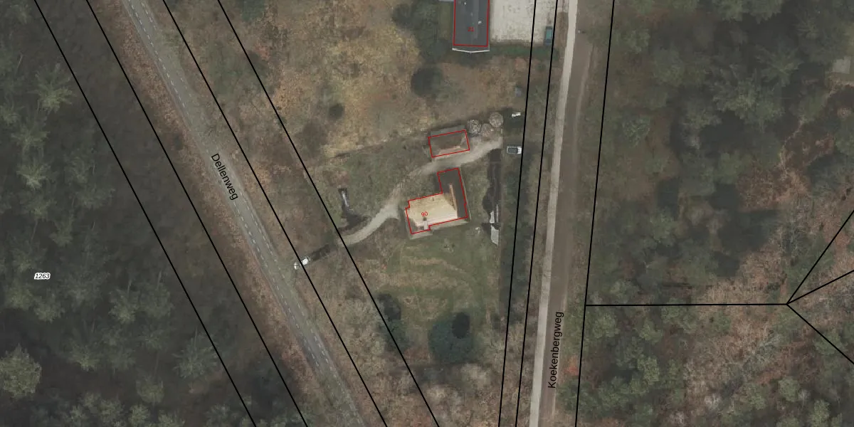 Het perceel waarop Dellenweg 90 staat heeft een oppervlakte van 3,1 ha. Dit is een zeer groot perceel. De perceeloppervlakte wordt geregistreerd door het Kadaster. Gedetailleerde informatie over de maten van dit perceel kunt u vinden in het rapport Kadastrale kaart met maatvoering van Dellenweg 90.