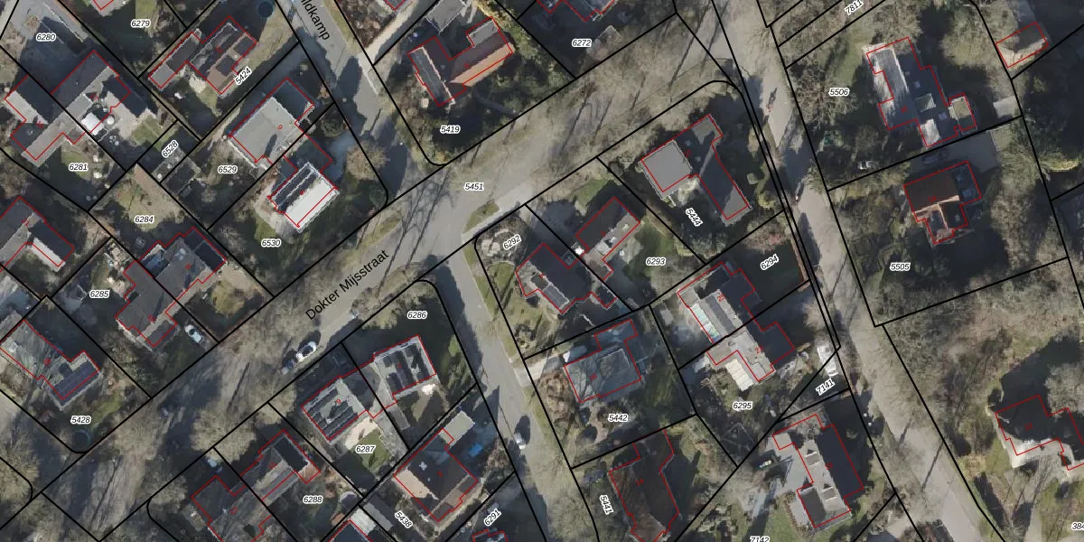 Het perceel waarop Dokter Mijsstraat 5 staat heeft een oppervlakte van 431 m². Dit is een groot perceel. De perceeloppervlakte wordt geregistreerd door het Kadaster. Gedetailleerde informatie over de maten van dit perceel kunt u vinden in het rapport Kadastrale kaart met maatvoering van Dokter Mijsstraat 5.