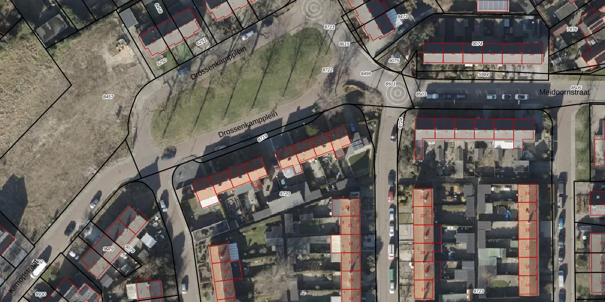 Het perceel waarop Drossenkampplein 3 staat heeft een oppervlakte van 5080 m². Dit is een zeer groot perceel. De perceeloppervlakte wordt geregistreerd door het Kadaster. Gedetailleerde informatie over de maten van dit perceel kunt u vinden in het rapport Kadastrale kaart met maatvoering van Drossenkampplein 3.