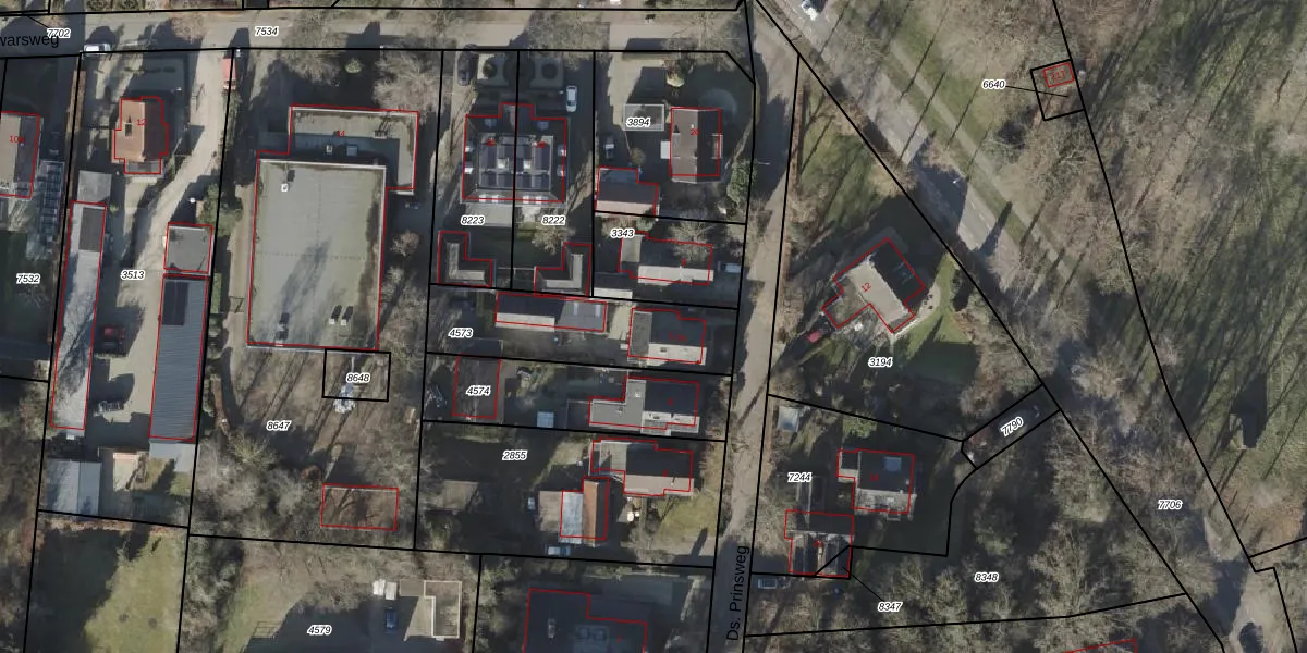 Het perceel waarop Ds. Prinsweg 7-A staat heeft een oppervlakte van 494 m². Dit is een groot perceel. De perceeloppervlakte wordt geregistreerd door het Kadaster. Gedetailleerde informatie over de maten van dit perceel kunt u vinden in het rapport Kadastrale kaart met maatvoering van Ds. Prinsweg 7-A.