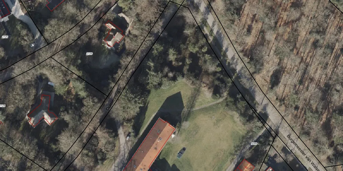 Het perceel waarop Duisterestraat 1-03 staat heeft een oppervlakte van 1,8 ha. Dit is een zeer groot perceel. De perceeloppervlakte wordt geregistreerd door het Kadaster. Gedetailleerde informatie over de maten van dit perceel kunt u vinden in het rapport Kadastrale kaart met maatvoering van Duisterestraat 1-03.