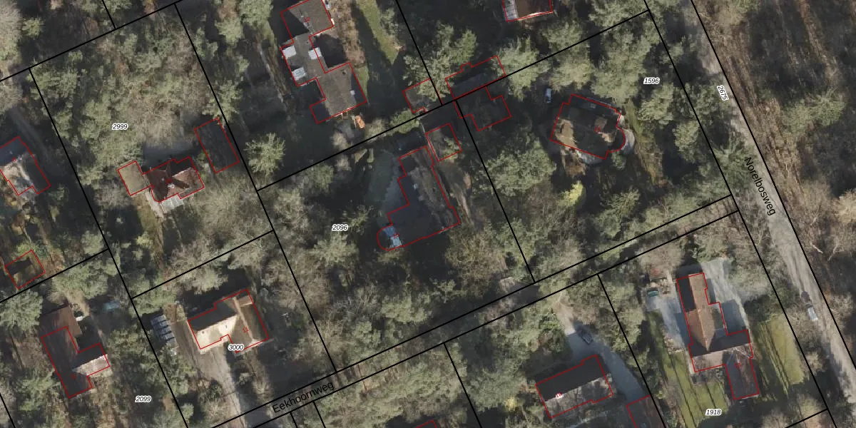 Het perceel waarop Eekhoornweg 15 staat heeft een oppervlakte van 2378 m². Dit is een zeer groot perceel. De perceeloppervlakte wordt geregistreerd door het Kadaster. Gedetailleerde informatie over de maten van dit perceel kunt u vinden in het rapport Kadastrale kaart met maatvoering van Eekhoornweg 15.