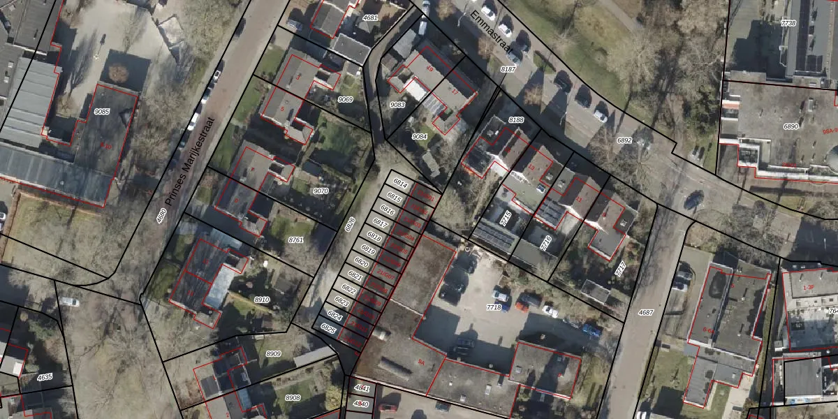 Gebruik de zoekbalk of klik op een perceel voor informatie over de adressen binnen dit perceel.