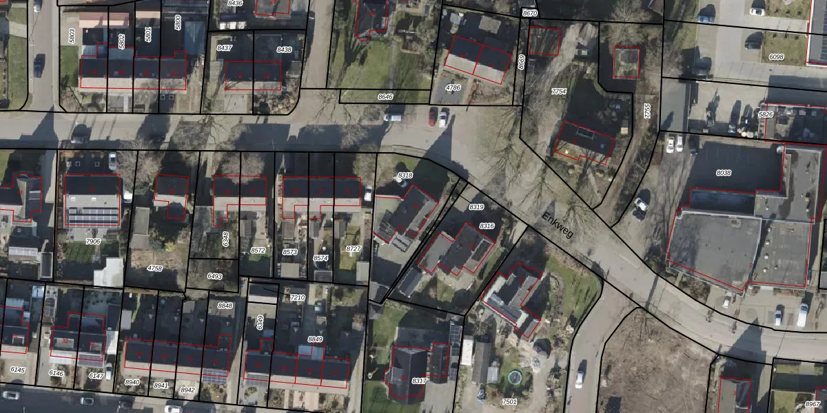 Het perceel waarop Enkweg 17 staat heeft een oppervlakte van 455 m². Dit is een groot perceel. De perceeloppervlakte wordt geregistreerd door het Kadaster. Gedetailleerde informatie over de maten van dit perceel kunt u vinden in het rapport Kadastrale kaart met maatvoering van Enkweg 17.