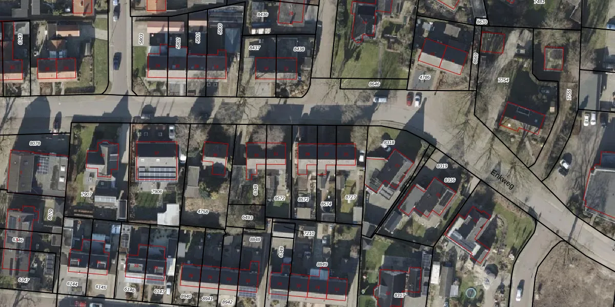 Gebruik de zoekbalk of klik op een perceel voor informatie over de adressen binnen dit perceel.