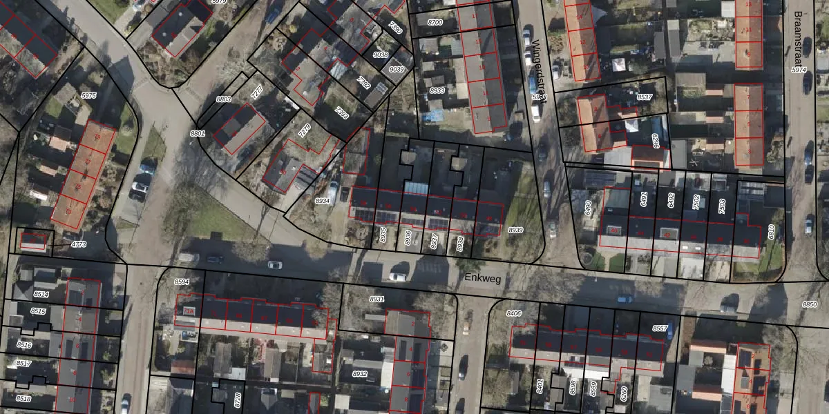 Het perceel waarop Enkweg 54 staat heeft een oppervlakte van 167 m². Dit is een middelgroot perceel. De perceeloppervlakte wordt geregistreerd door het Kadaster. Gedetailleerde informatie over de maten van dit perceel kunt u vinden in het rapport Kadastrale kaart met maatvoering van Enkweg 54.