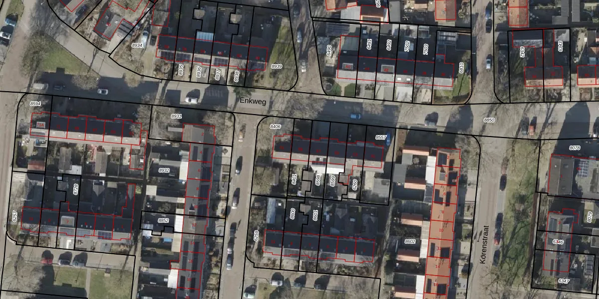 Het perceel waarop Enkweg 59 staat heeft een oppervlakte van 157 m². Dit is een middelgroot perceel. De perceeloppervlakte wordt geregistreerd door het Kadaster. Gedetailleerde informatie over de maten van dit perceel kunt u vinden in het rapport Kadastrale kaart met maatvoering van Enkweg 59.