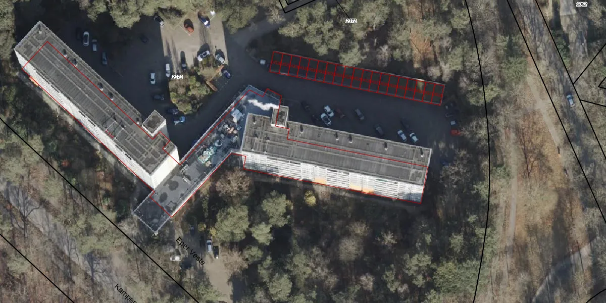 Het perceel waarop Eper Veste 1-G12 staat heeft een oppervlakte van 2,7 ha. Dit is een zeer groot perceel. De perceeloppervlakte wordt geregistreerd door het Kadaster. Gedetailleerde informatie over de maten van dit perceel kunt u vinden in het rapport Kadastrale kaart met maatvoering van Eper Veste 1-G12.