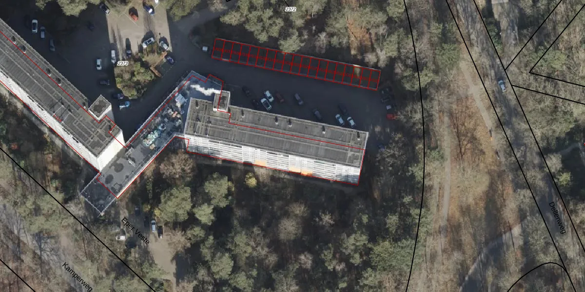 Het perceel waarop Eper Veste 1-G16 staat heeft een oppervlakte van 2,7 ha. Dit is een zeer groot perceel. De perceeloppervlakte wordt geregistreerd door het Kadaster. Gedetailleerde informatie over de maten van dit perceel kunt u vinden in het rapport Kadastrale kaart met maatvoering van Eper Veste 1-G16.