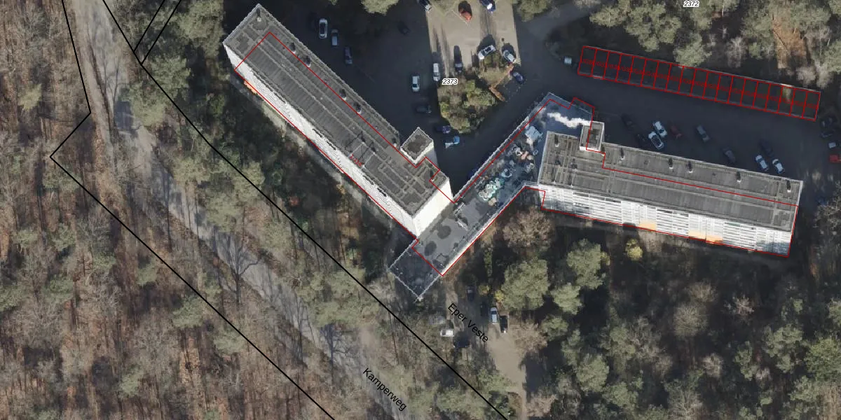 Het perceel waarop Eper Veste 28 staat heeft een oppervlakte van 2,7 ha. Dit is een zeer groot perceel. De perceeloppervlakte wordt geregistreerd door het Kadaster. Gedetailleerde informatie over de maten van dit perceel kunt u vinden in het rapport Kadastrale kaart met maatvoering van Eper Veste 28.