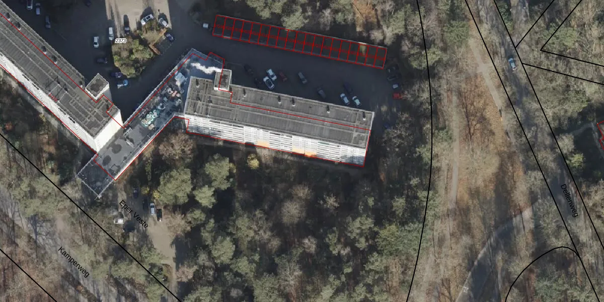 Het perceel waarop Eper Veste 61 staat heeft een oppervlakte van 2,7 ha. Dit is een zeer groot perceel. De perceeloppervlakte wordt geregistreerd door het Kadaster. Gedetailleerde informatie over de maten van dit perceel kunt u vinden in het rapport Kadastrale kaart met maatvoering van Eper Veste 61.