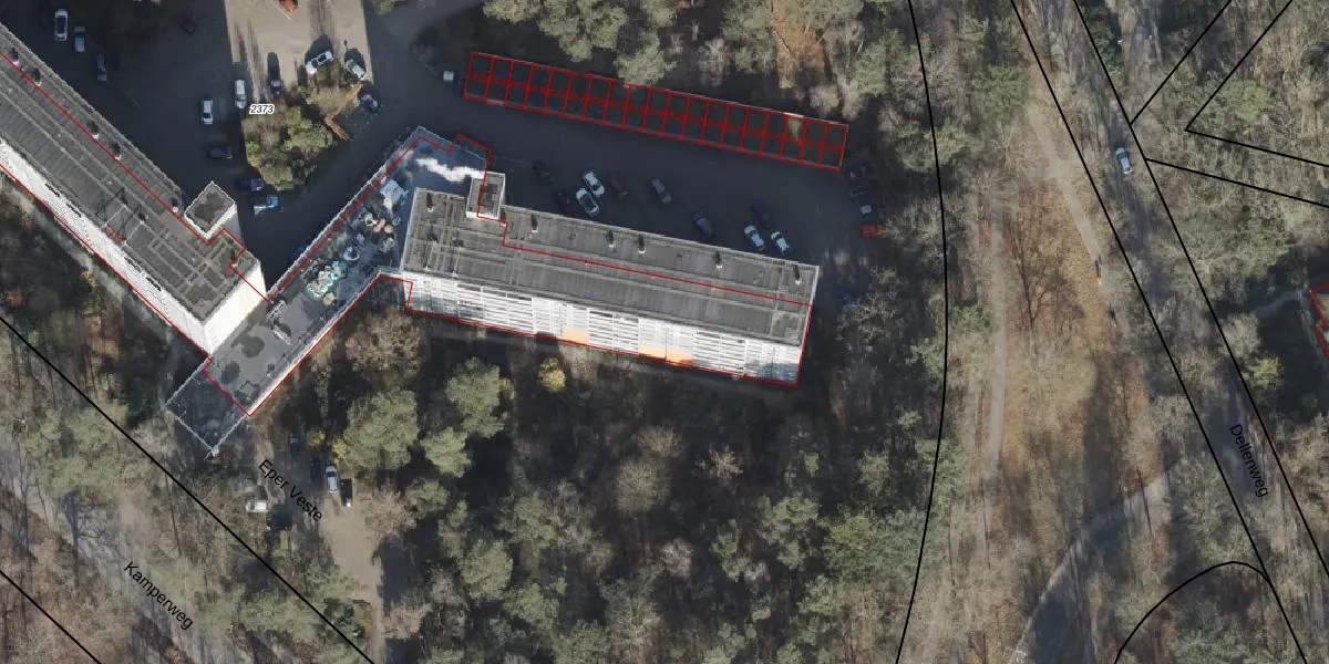 Het perceel waarop Eper Veste 75 staat heeft een oppervlakte van 2,7 ha. Dit is een zeer groot perceel. De perceeloppervlakte wordt geregistreerd door het Kadaster. Gedetailleerde informatie over de maten van dit perceel kunt u vinden in het rapport Kadastrale kaart met maatvoering van Eper Veste 75.