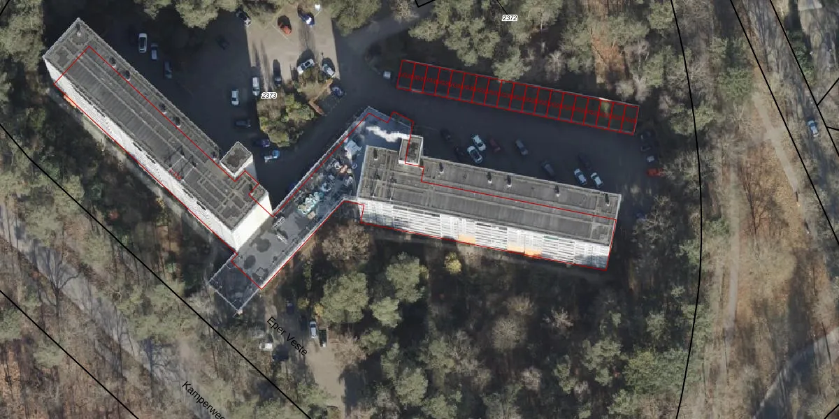 Het perceel waarop Eper Veste 79 staat heeft een oppervlakte van 2,7 ha. Dit is een zeer groot perceel. De perceeloppervlakte wordt geregistreerd door het Kadaster. Gedetailleerde informatie over de maten van dit perceel kunt u vinden in het rapport Kadastrale kaart met maatvoering van Eper Veste 79.