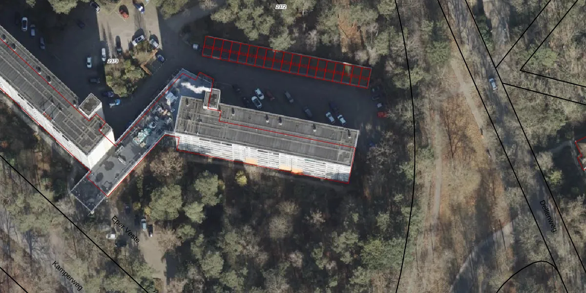 Het perceel waarop Eper Veste 96 staat heeft een oppervlakte van 2,7 ha. Dit is een zeer groot perceel. De perceeloppervlakte wordt geregistreerd door het Kadaster. Gedetailleerde informatie over de maten van dit perceel kunt u vinden in het rapport Kadastrale kaart met maatvoering van Eper Veste 96.