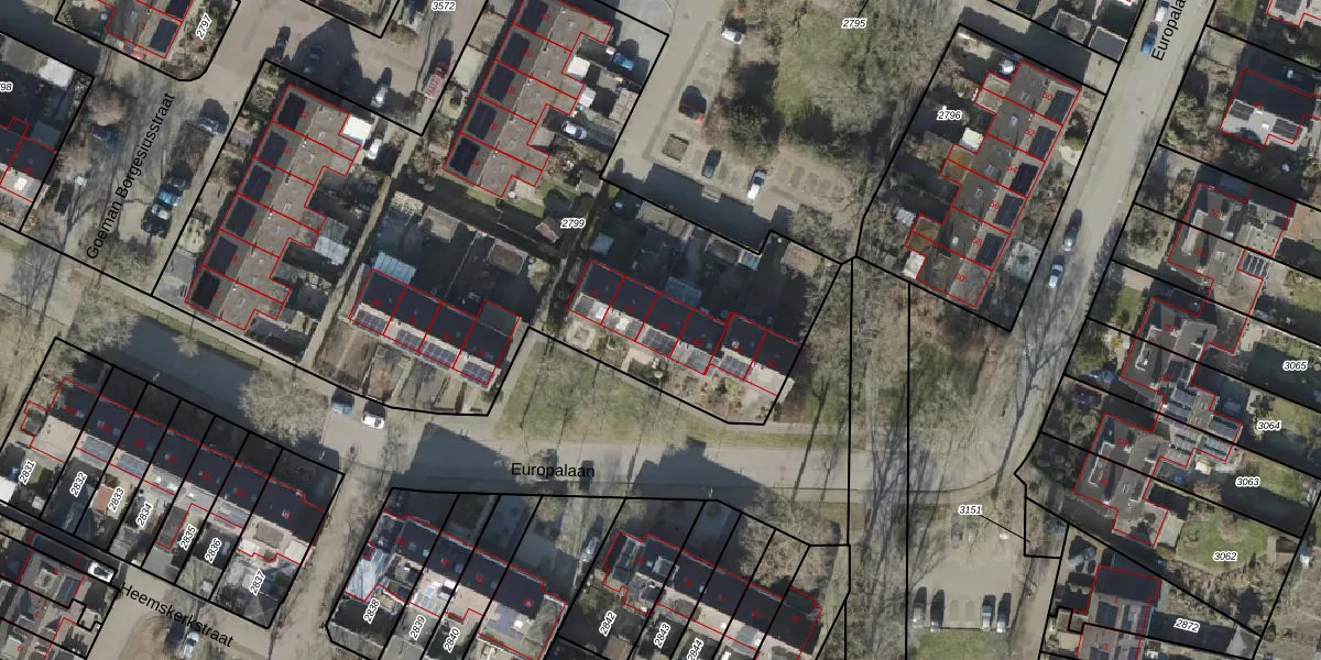 Het perceel waarop Europalaan 68 staat heeft een oppervlakte van 3900 m². Dit is een zeer groot perceel. De perceeloppervlakte wordt geregistreerd door het Kadaster. Gedetailleerde informatie over de maten van dit perceel kunt u vinden in het rapport Kadastrale kaart met maatvoering van Europalaan 68.