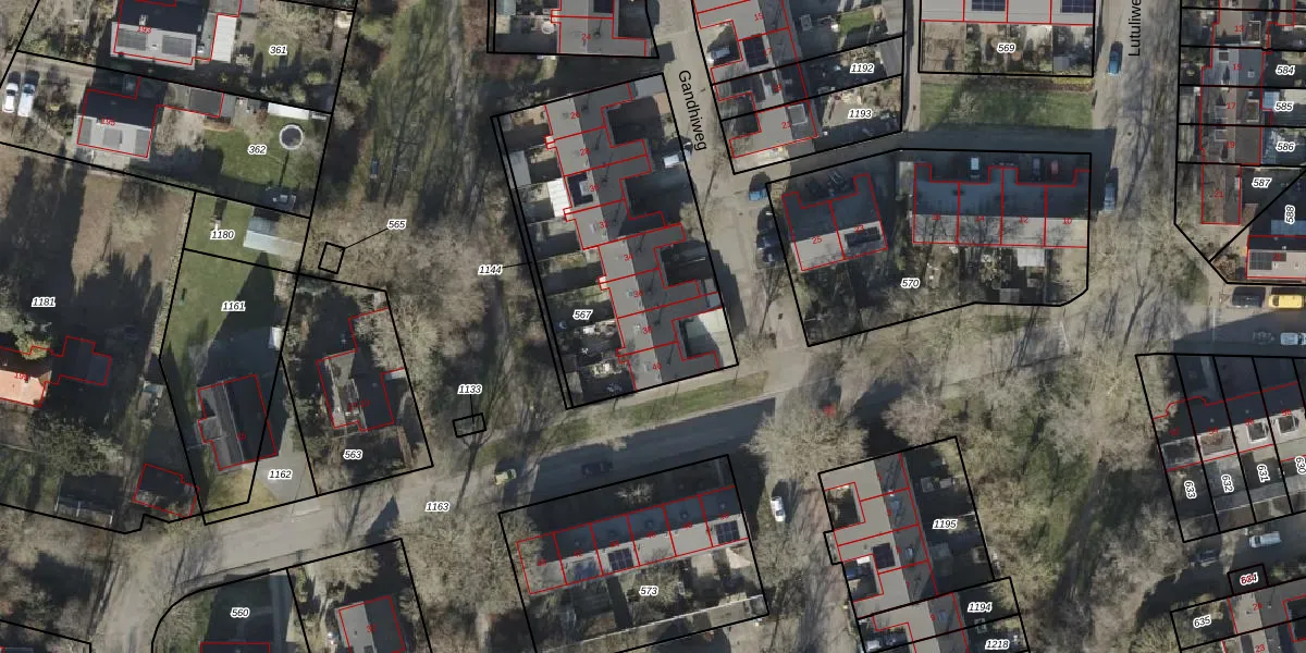 Het perceel waarop Gandhiweg 38 staat heeft een oppervlakte van 1205 m². Dit is een zeer groot perceel. De perceeloppervlakte wordt geregistreerd door het Kadaster. Gedetailleerde informatie over de maten van dit perceel kunt u vinden in het rapport Kadastrale kaart met maatvoering van Gandhiweg 38.