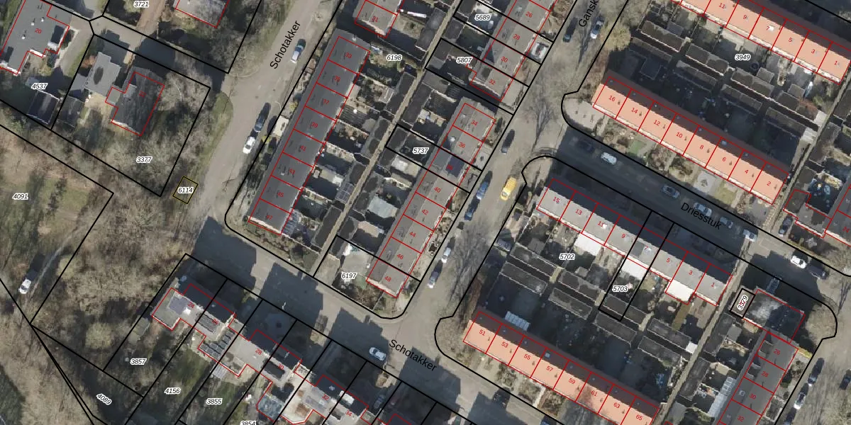 Het perceel waarop Ganskamer 42 staat heeft een oppervlakte van 4051 m². Dit is een zeer groot perceel. De perceeloppervlakte wordt geregistreerd door het Kadaster. Gedetailleerde informatie over de maten van dit perceel kunt u vinden in het rapport Kadastrale kaart met maatvoering van Ganskamer 42.