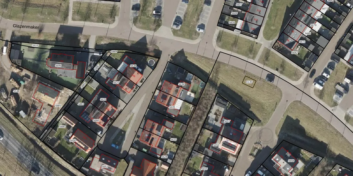 Het perceel waarop Glazenmaker 119 staat heeft een oppervlakte van 400 m². Dit is een groot perceel. De perceeloppervlakte wordt geregistreerd door het Kadaster. Gedetailleerde informatie over de maten van dit perceel kunt u vinden in het rapport Kadastrale kaart met maatvoering van Glazenmaker 119.