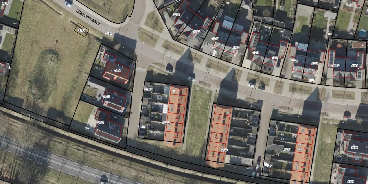 Het perceel waarop Glazenmaker 35 staat heeft een oppervlakte van 770 m². Dit is een groot perceel. De perceeloppervlakte wordt geregistreerd door het Kadaster. Gedetailleerde informatie over de maten van dit perceel kunt u vinden in het rapport Kadastrale kaart met maatvoering van Glazenmaker 35.