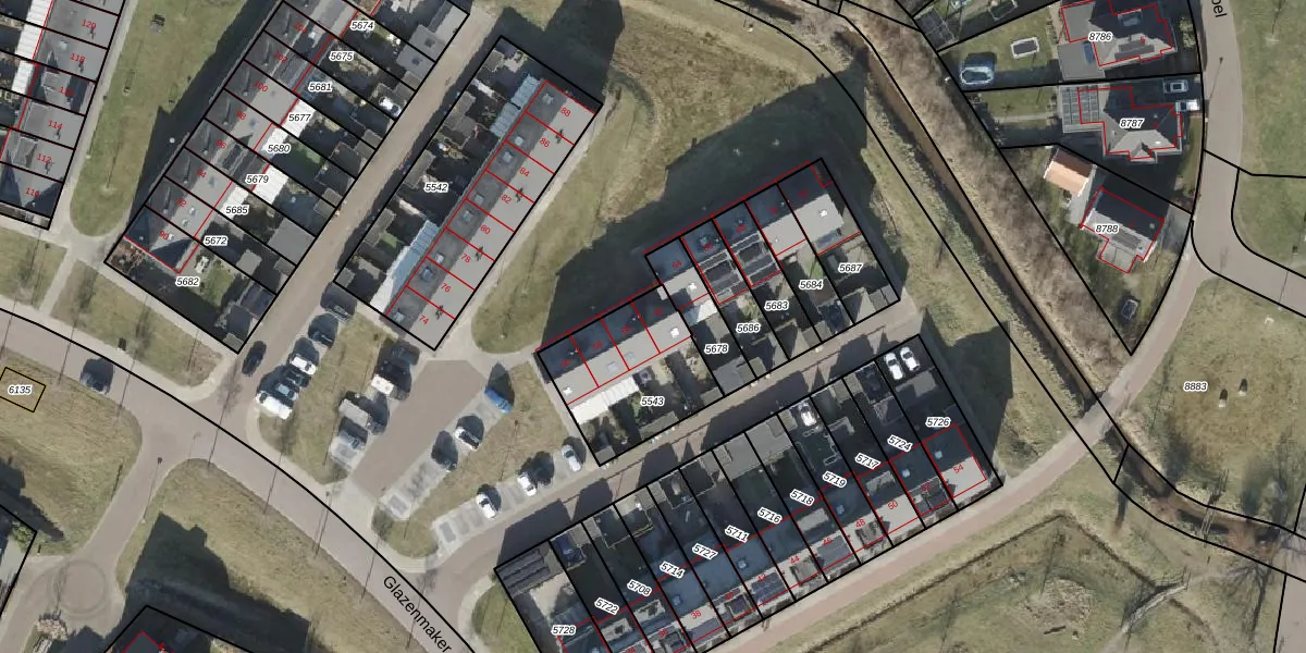 Het perceel waarop Glazenmaker 62 staat heeft een oppervlakte van 431 m². Dit is een groot perceel. De perceeloppervlakte wordt geregistreerd door het Kadaster. Gedetailleerde informatie over de maten van dit perceel kunt u vinden in het rapport Kadastrale kaart met maatvoering van Glazenmaker 62.