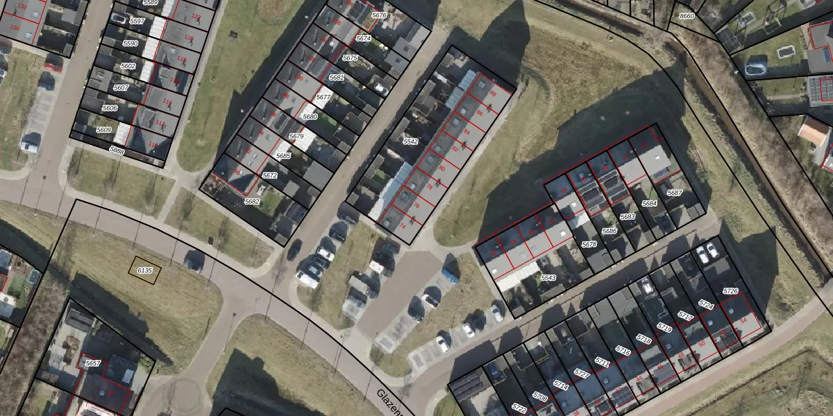 Het perceel waarop Glazenmaker 76 staat heeft een oppervlakte van 853 m². Dit is een groot perceel. De perceeloppervlakte wordt geregistreerd door het Kadaster. Gedetailleerde informatie over de maten van dit perceel kunt u vinden in het rapport Kadastrale kaart met maatvoering van Glazenmaker 76.
